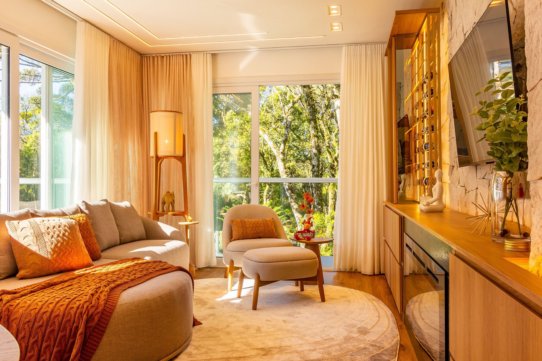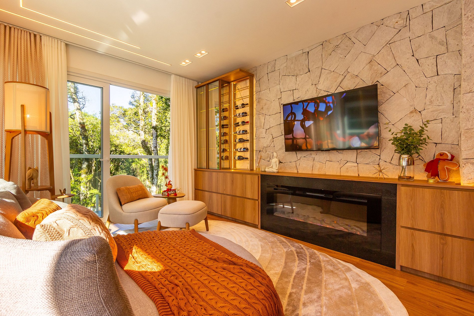 Sala com lareira, adega e Smart TV Cozinha completa com utensílios e eletrodomésticos Área de serviço com lavadora Enxoval completo de cama e banho Wi-Fi Estacionamento coberto Ponto para carregamento de carro elétrico